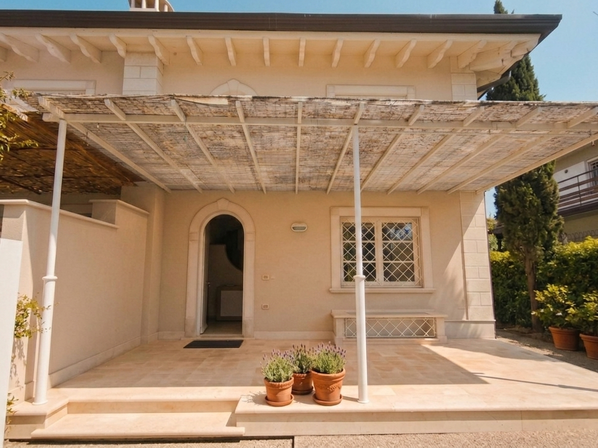 All’esterno porticato per pranzare e rilassarsi all’aperto.